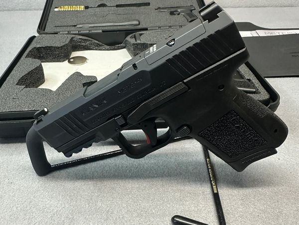 The CANiK METE MC9 9mm, semi-automatic, striker-fired pistol features an integrated safety and comes standard with a smooth trigger take-up, crisp break, and short reset. It was designed with concealed carry comfort in mind. The white dot front sight contrasts with the blacked out rear sight to allow for quicker sight alignment and target acquisition. This dependable, accurate handgun checks all the boxes... it has everything you need and nothing you don't. The Mete MC9 will be initially offered in black, flat dark earth (FDE), and two tone black/fde.