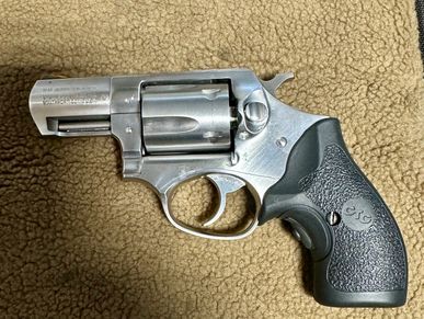 Used Stainless 2-7/8" Barrel in 357 Magnum. It does have some light scratches on frame near the hammer. Also has two small 1/8" grooves on barrel. None of this will effect the firearm safety or reliability. It's a tool and tools get scratches. Not a collector piece and priced for that.